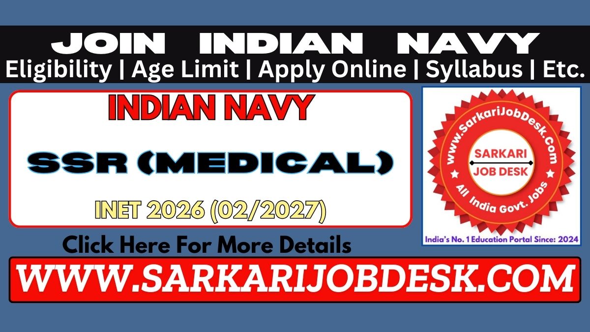 The Indian Navy (Nausena Bharti)Indian Navy Sailors in Medical Branch SSR Medical 02/2027 Batch RecruitmentIndian Navy SSR Medical Exam 2026 : Short Details of NotificationWWW.SARKARIJOBDESK.COM |