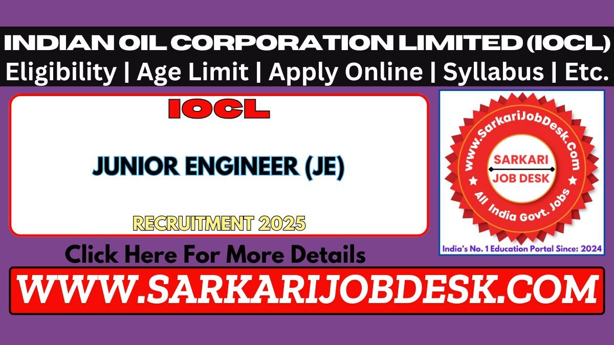 Indian Oil Corporation Limited (IOCL)IOCL Junior Engineer Recruitment 2025IOCL JE Advt No.: IOCL/CO-HR/RECTT/2025/02 : Short Details of NotificationWWW.SARKARIJOBDESK.COM |