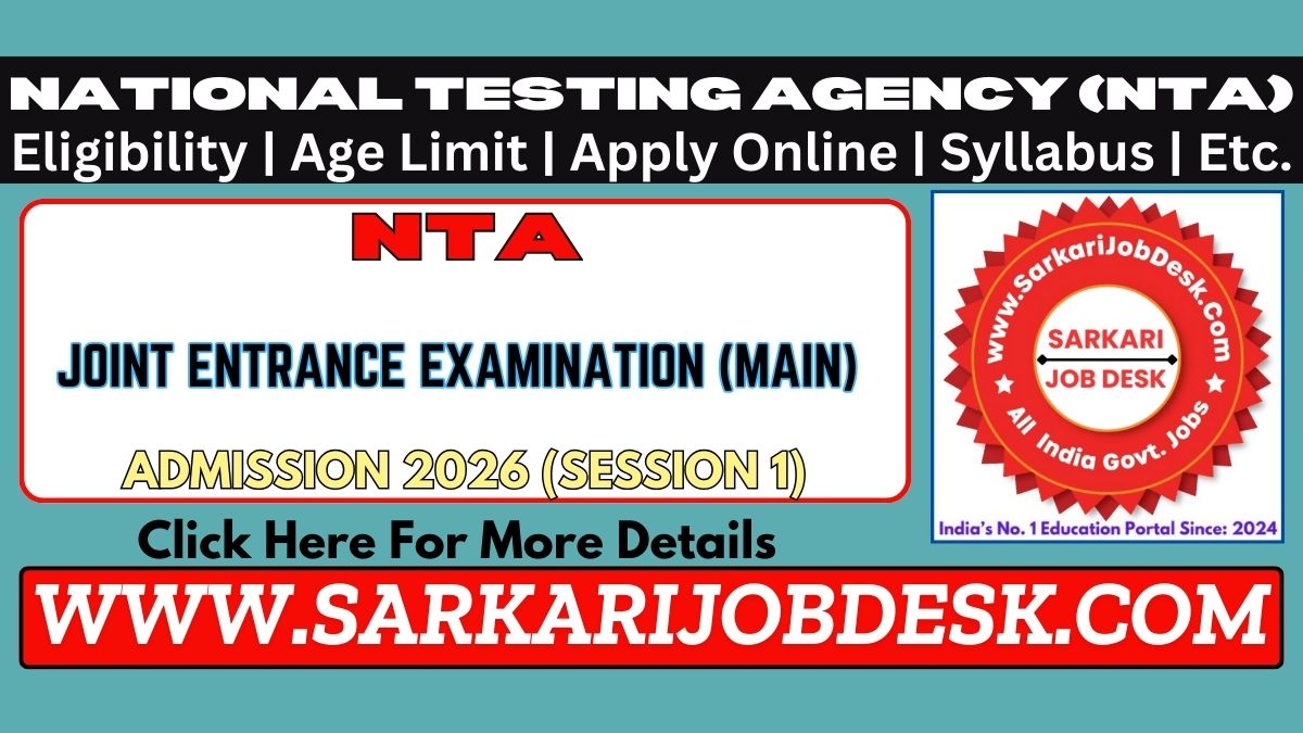 National Testing Agency (NTA)NTA Joint Entrance Examination Main 2026 Session 1JEEMAIN January 2026 Exam : Short Details of NotificationWWW.SARKARIJOBDESK.COM |