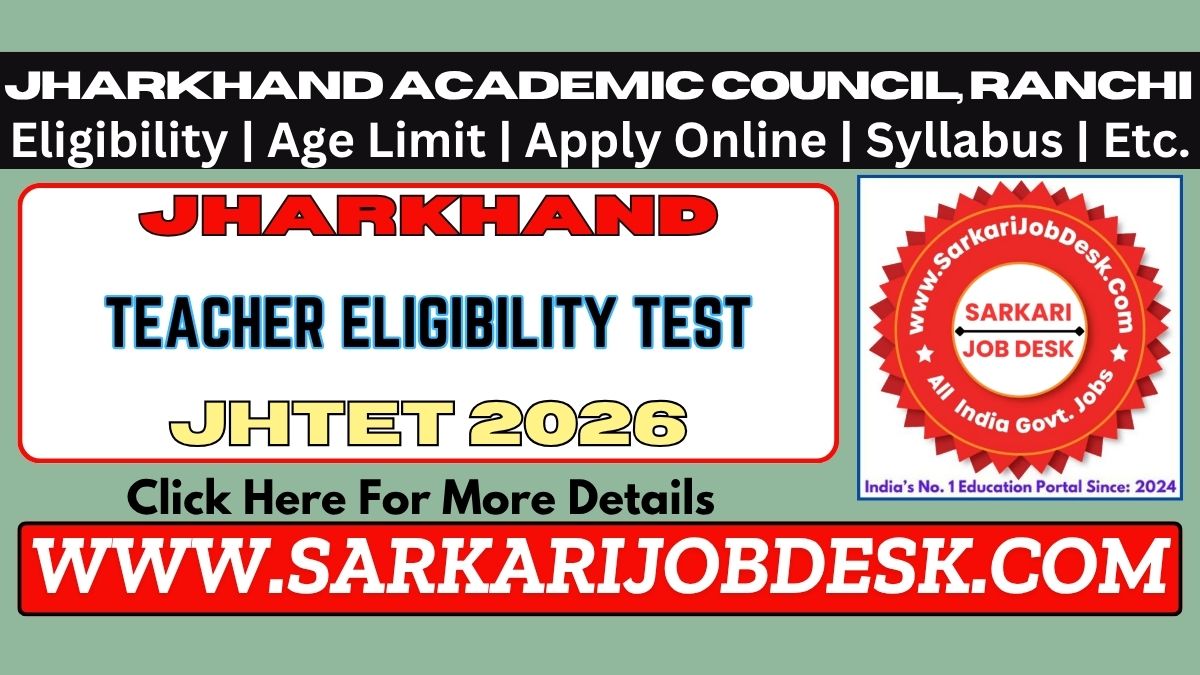 Jharkhand Academic Council (JAC) has released the Jharkhand Teacher Eligibility Test JHTET 2026 Notification 2026. Those Candidates are Interested to the Following Exam Can Apply Online From 21/04/2026 to 21/05/2026.candidates should read the JAC JHTET 2026 information brochure for all the information related to the JHTET exam like syllabus, eligibility, age limit, fees, Primary and Junior Level, information and other types of information and then apply. |