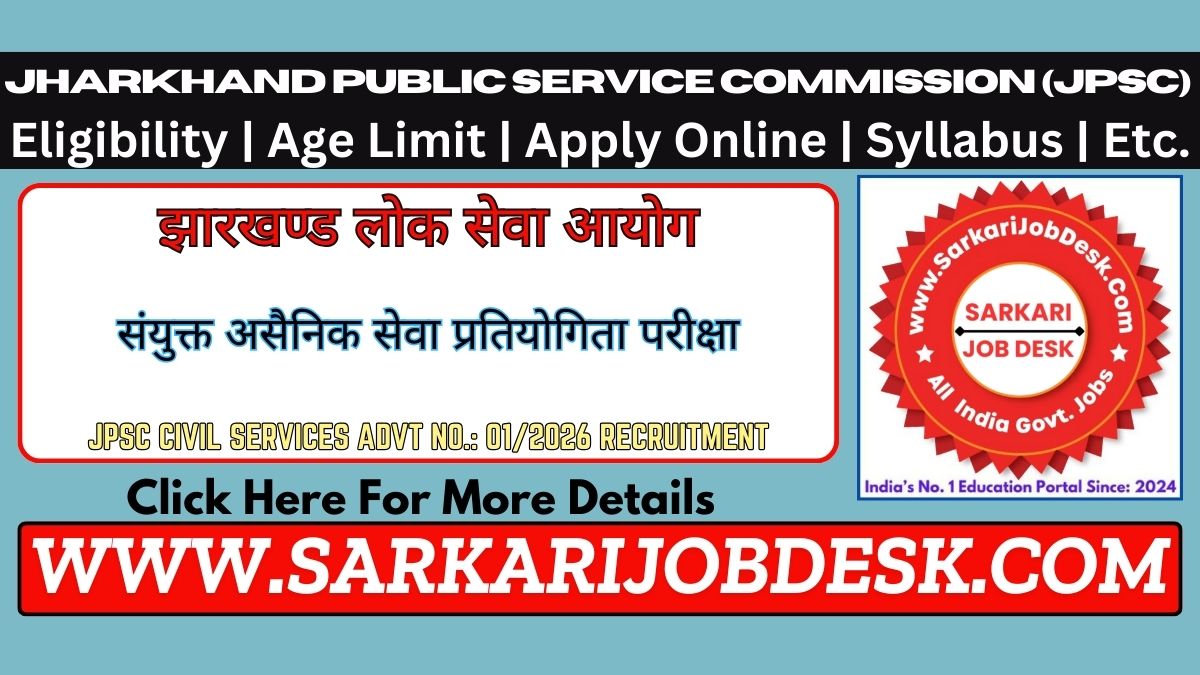 Jharkhand Public Service Commission (JPSC)JPSC Combined Civil Services Examination 2025JPSC Pre 2026 Advt No.: 01/2026 : Short Details of NotificationWWW.SARKARIJOBDESK.COM |