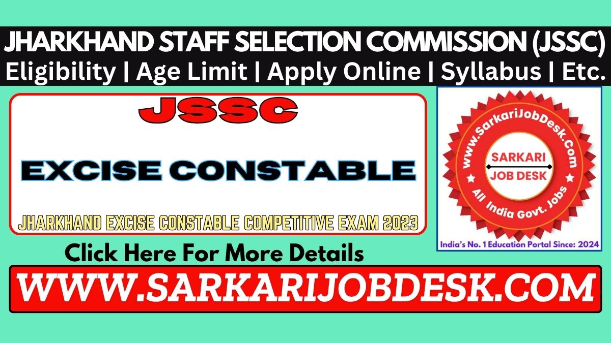 Jharkhand Staff Selection Commission (JSSC)Jharkhand Excise Constable Competitive Examination (JECCE) 2023JSSC JECCE Advt No.: 06/2023 : Short Details of NotificationWWW.SARKARIJOBDESK.COM |