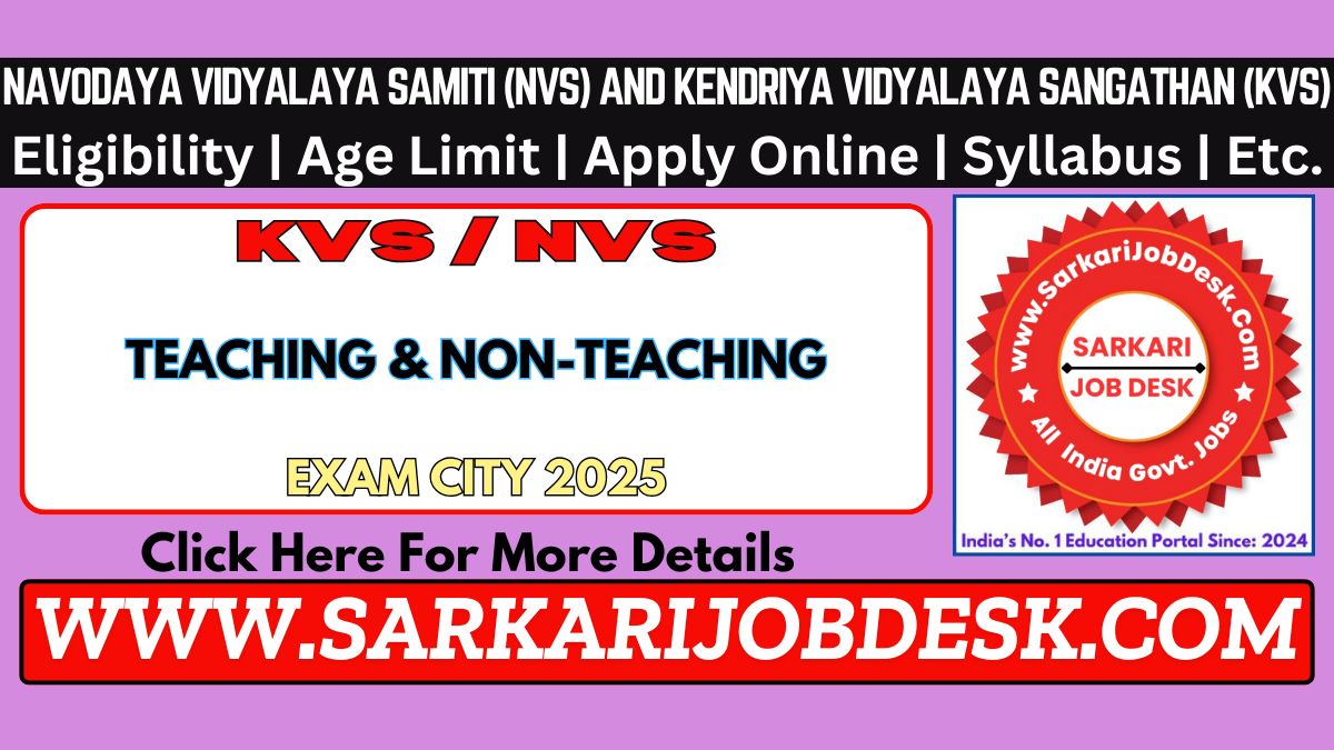 Kendriya Vidyalaya Sangathan (KVS)/ Navodaya Vidyalaya Samiti (NVS)KVS/NVS Teaching & Non-Teaching Recruitment 2025KVS/NVS Teaching & Non-Teaching Various Post 2025 : Short Details of NotificationWWW.SARKARIJOBDESK.COM |