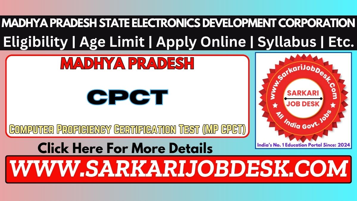 Madhya Pradesh State Electronics Development CorporationMP Computer Proficiency Certification Test (MP CPCT 2026)MPSEDC MP CPCT Exam 2026 : Short Details of NotificationWWW.SARKARIJOBDESK.COM |