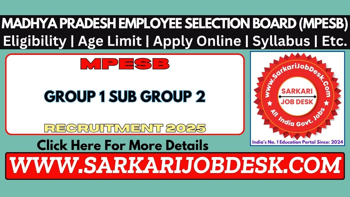 Madhya Pradesh Employee Selection Board (MPESB)MPESB Group 1 Sub Group 2 Recruitment 2025MPESB Group 1 Sub Group 2 Exam 2026 : Short Details of NotificationWWW.SARKARIJOBDESK.COM |