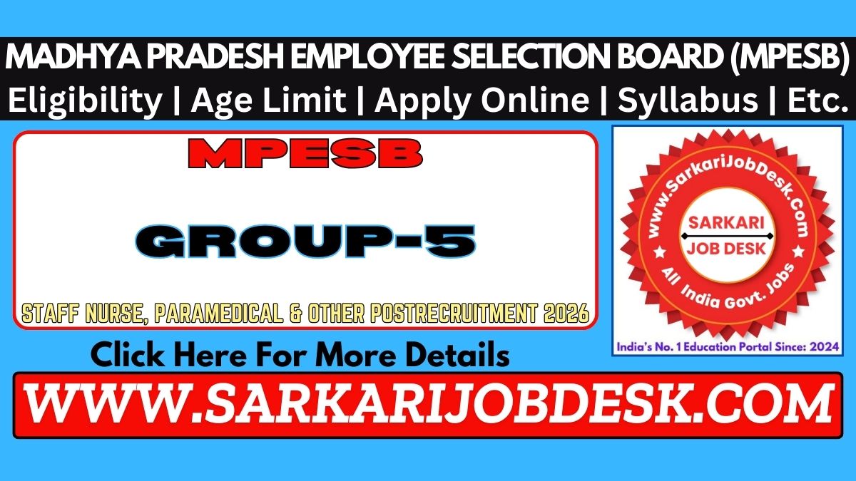 Madhya Pradesh Employee Selection Board (MPESB)MPESB MP Group-5 Staff Nurse, Paramedical and Other Post Combined Recruitment Test 2026MPESB Group 5 Exam 2026 : Short Details of NotificationWWW.SARKARIJOBDESK.COM |