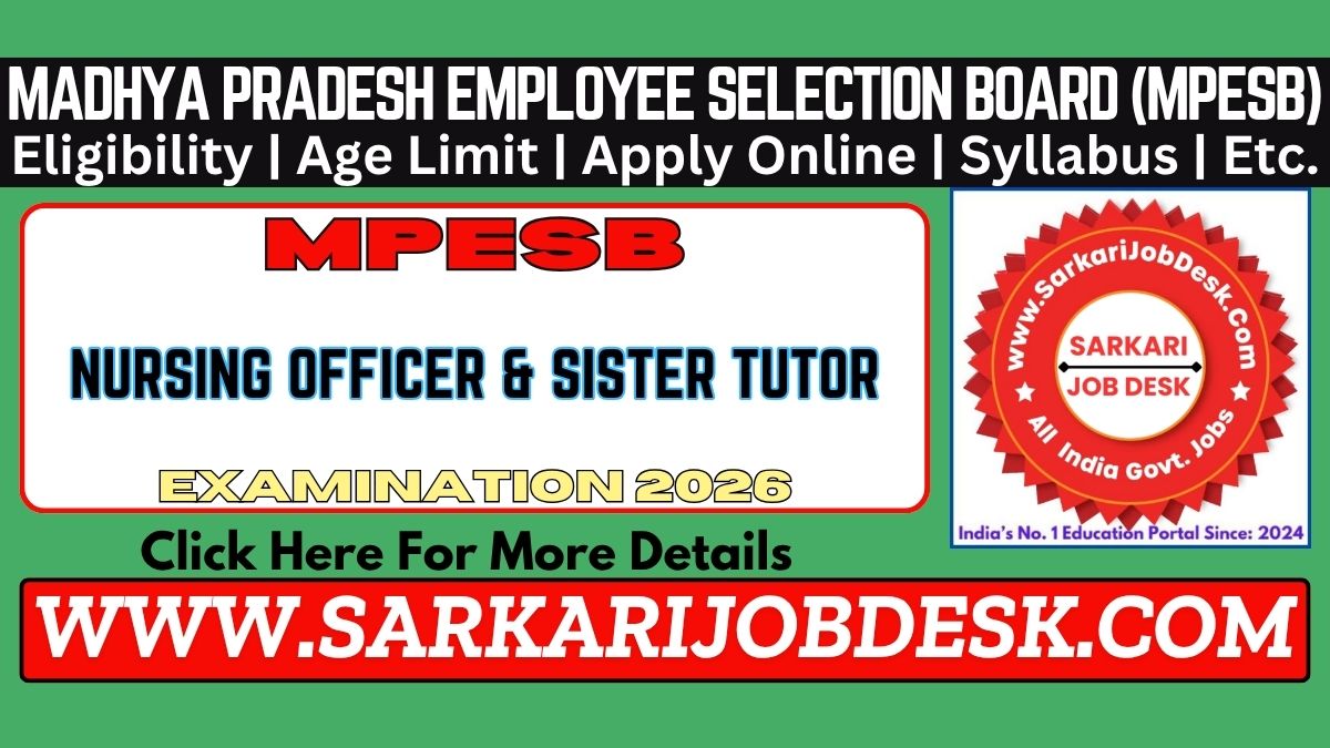 Madhya Pradesh Employee Selection Board (MPESB)MPESB MP Nursing Officer & Sister Tutor 2026 Recruitment 2026MPESB Nursing Officer and Sister Tutor Exam 2026 : Short Details of NotificationWWW.SARKARIJOBDESK.COM |