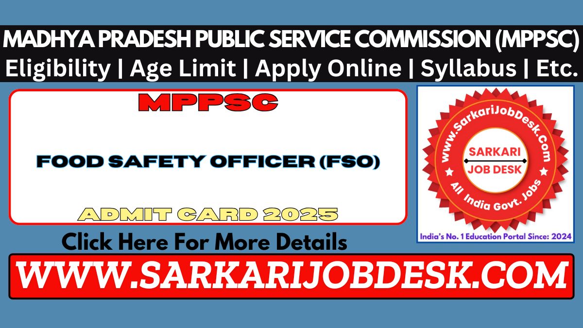 | Name of Post: | Madhya Pradesh MPPSC Food Safety Officer (FSO) Admit Card 2025 – Exam Date, Download Link for 67 Posts |