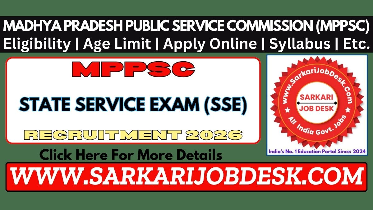 Madhya Pradesh Public Service Commission (MPPSC)MPPSC State Service Exam (SSE) Recruitment 2026MPPSC Advt No.: 29/2025 : Short Details of NotificationWWW.SARKARIJOBDESK.COM |