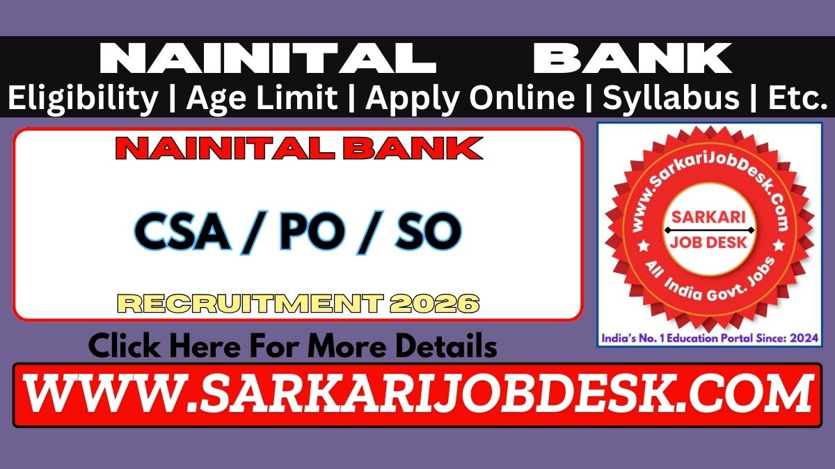 Nainital BankNainital Bank CSA PO SO Recruitment 2025Nainital Bank : Short Details of NotificationWWW.SARKARIJOBDESK.COM |