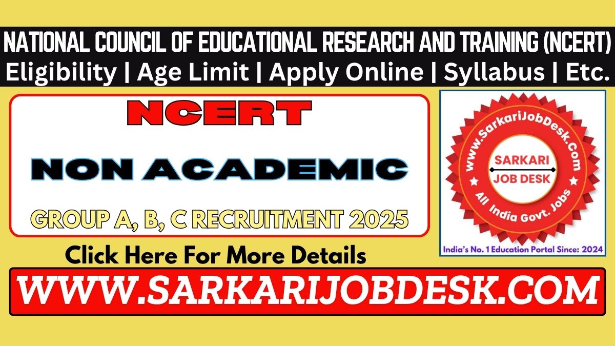 National Council of Educational Research and Training (NCERT)NCERT Non Academic Group A, B, C Recruitment 2025NCERT 01/2025/Non-Academic : Short Details of NotificationWWW.SARKARIJOBDESK.COM |