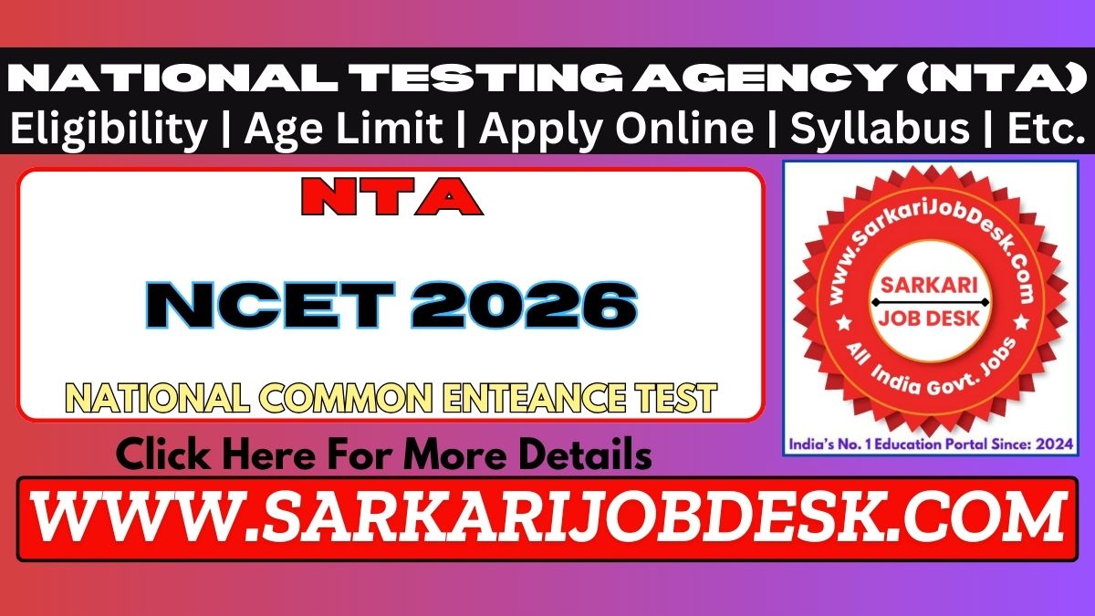 National Testing Agency (NTA)NTA National Common Entrance Test (NCET) 2026NTA NCET Exam 2026 : Short Details of NotificationWWW.SARKARIJOBDESK.COM |