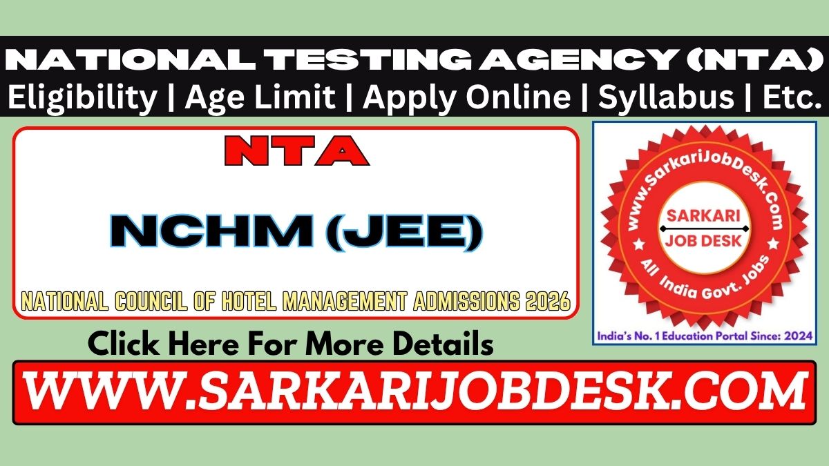 National Testing Agency (NTA)National Council of Hotel Management (NCHM) JEE Admission 2026NCHMJEE Exam 2026 : Short Details of NotificationWWW.SARKARIJOBDESK.COM |