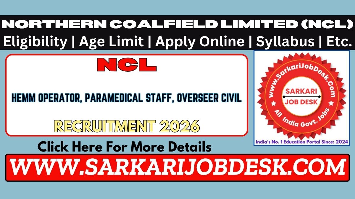 Northern Coalfield Limited (NCL)NCL HEMM Operator, Paramedical Staff, Overseer Civil Recruitment 2026NCL Exam 2026 : Short Details of NotificationWWW.SARKARIJOBDESK.COM |