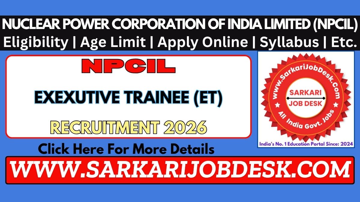 Nuclear Power Corporation of India Limited (NPCIL)NPCIL Executive Trainee (ET) Recruitment 2026NPCIL ET 2026 : Short Details of NotificationWWW.SARKARIJOBDESK.COM |