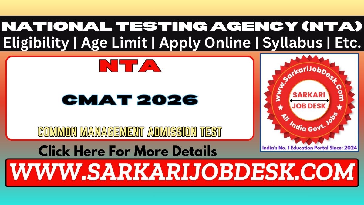 National Testing Agency (NTA)NTA Common Management Admission Test 2026CMAT 2026 Admissions Test : Short Details of NotificationWWW.SARKARIJOBDESK.COM |