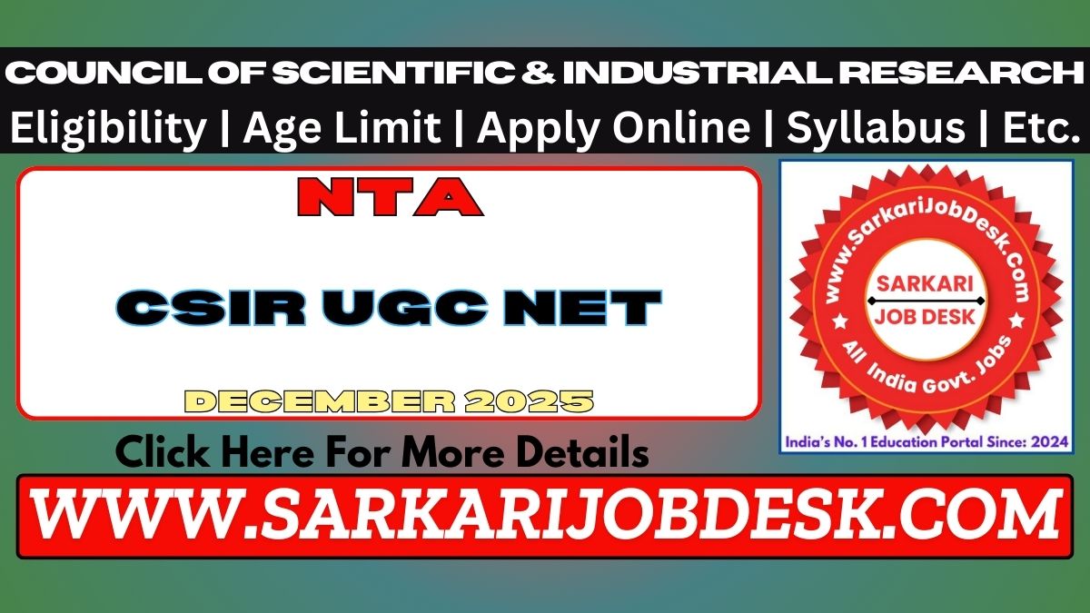 NTA - Council of Scientific & Industrial Research CSIRNTA CSIR UGC NET Exam December 2025NTA CSIR NET December 2025 Exam : Short Details of NotificationWWW.SARKARIJOBDESK.COM |