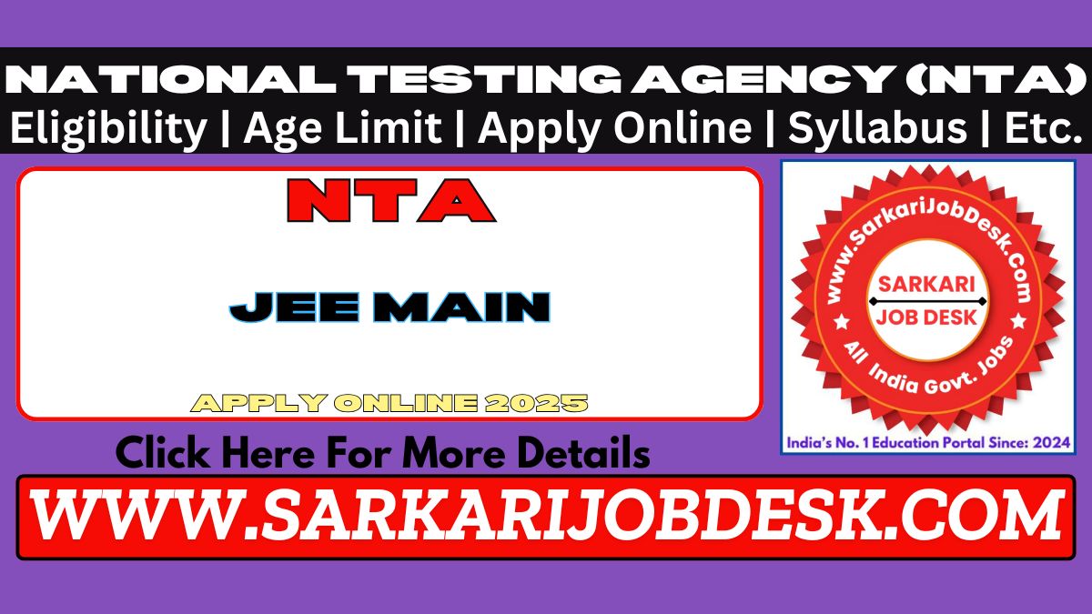 National Testing Agency (NTA)NTA Joint Entrance Examination (Main) Session 1 Exam January 2026NTA JEE (MAIN) 2026 : Short Details of NotificationWWW.SARKARIJOBDESK.COM |