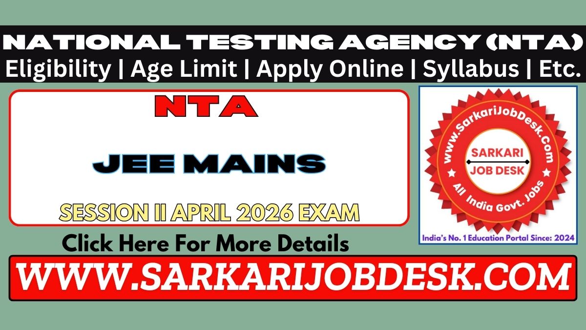 National Testing Agency (NTA)NTA Joint Entrance Examination Main 2026 Session 2JEEMAIN April 2026 Exam : Short Details of NotificationWWW.SARKARIJOBDESK.COM |