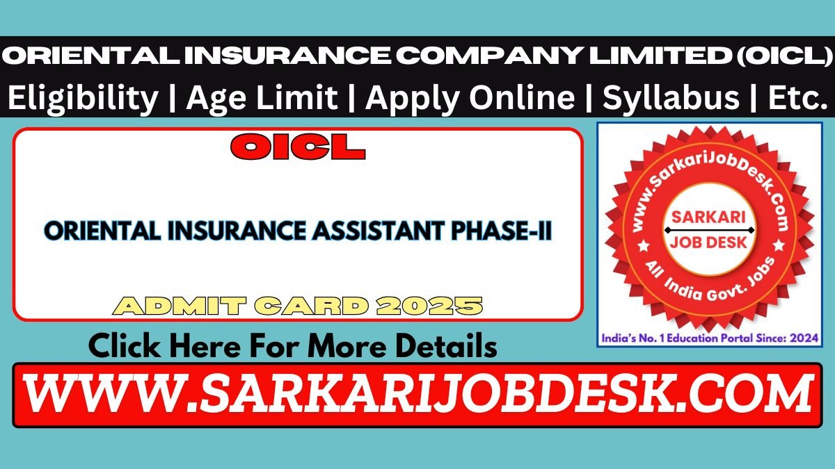 | Name of Post: | OICL Oriental Insurance Assistant Phase-II Admit Card 2025 Out for 500 Post |