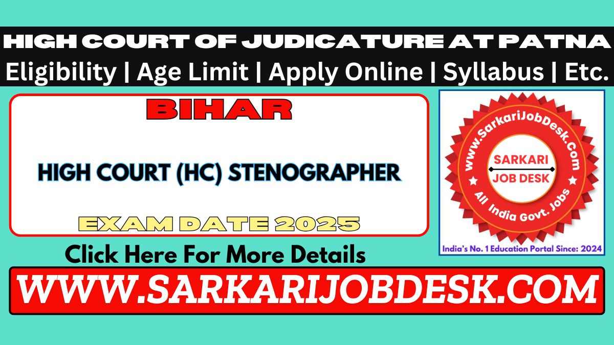 High Court of Judicature at Patna (Bihar)Stenographer (Group C Post) Recruitment 2025Patna HC Advt No.: PHC/02/2025 : Short Details of NotificationWWW.SARKARIJOBDESK.COM |