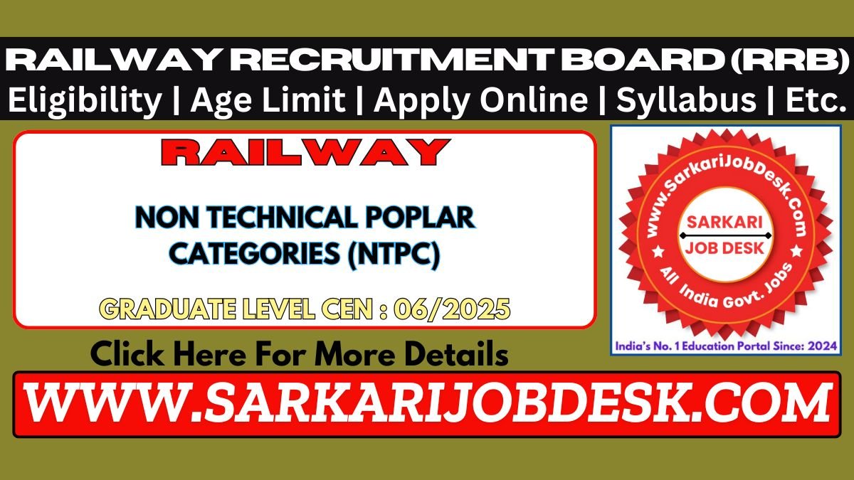 Railway Recruitment Board (RRB)Railway RRB NTPC Graduate Level Exam 2025RRB NTPC Graduate Level Advt No.: CEN 06/2025 : Short Details of NotificationWWW.SARKARIJOBDESK.COM |