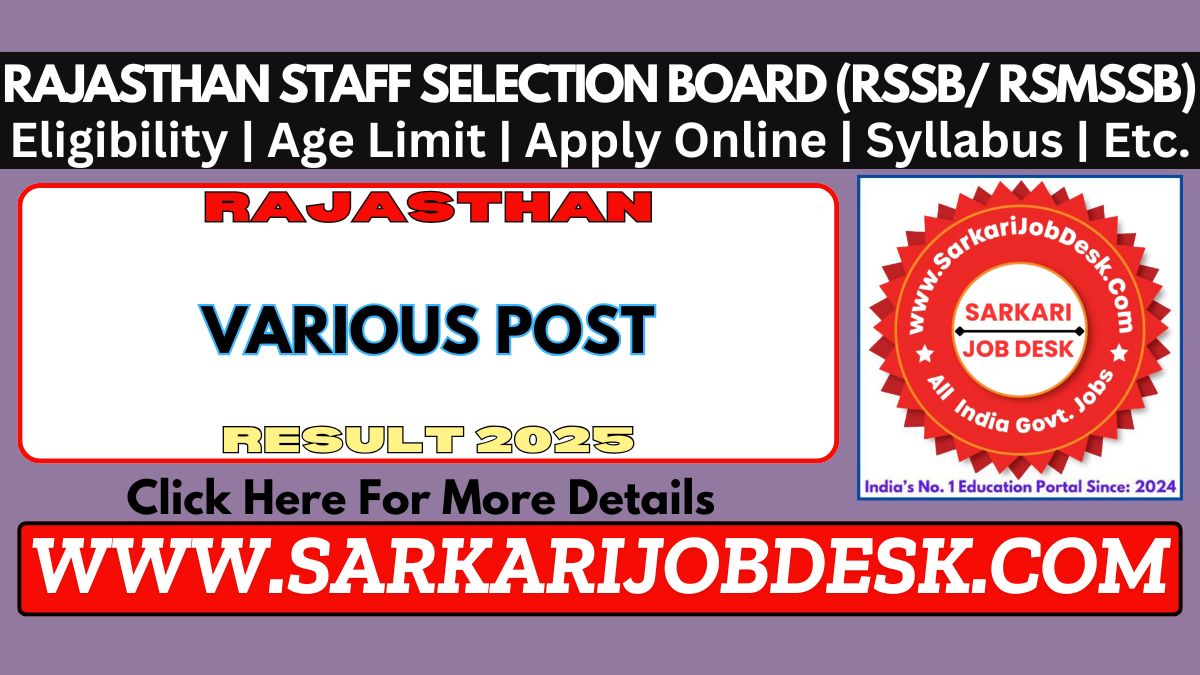 Rajasthan Staff Selection Board (RSSB/ RSMSSB)Rajasthan Staff Selection Board Recruitment 2025RSSB NHM & RajMES Various Post 2025 : Short Details of NotificationWWW.SARKARIJOBDESK.COM |