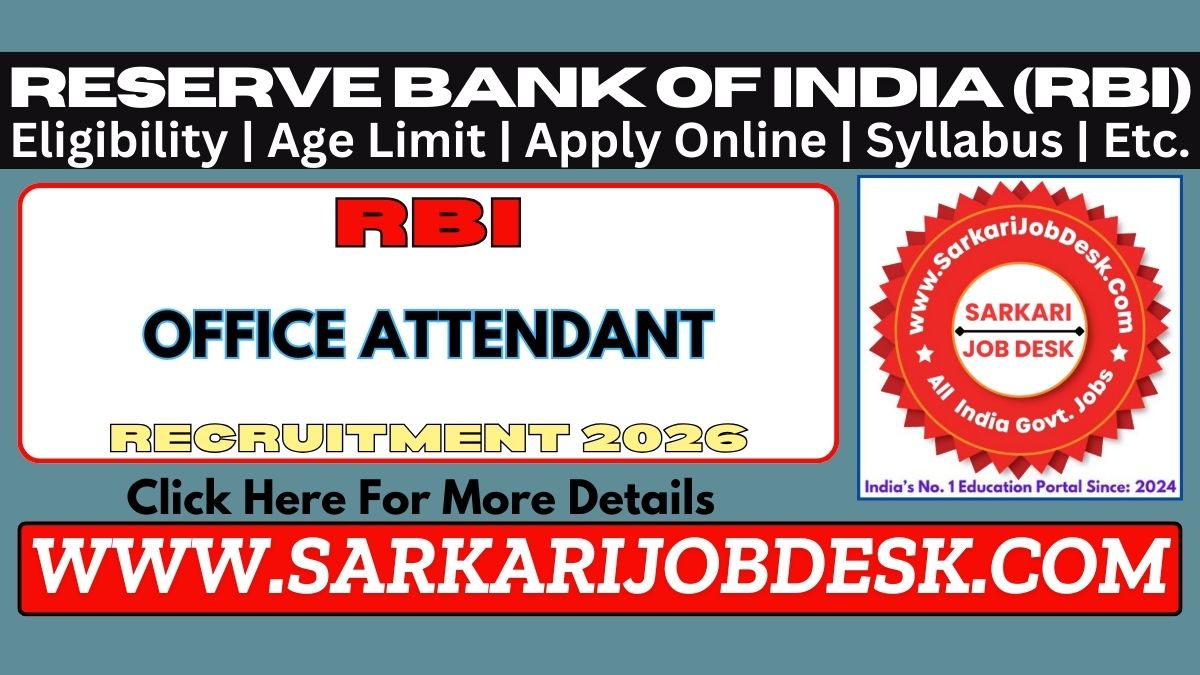 Reserve Bank of India (RBI)RBI Office Attendant Recruitment 2026Reserve Bank Office Attendant Exam 2026 : Short Details of NotificationWWW.SARKARIJOBDESK.COM |