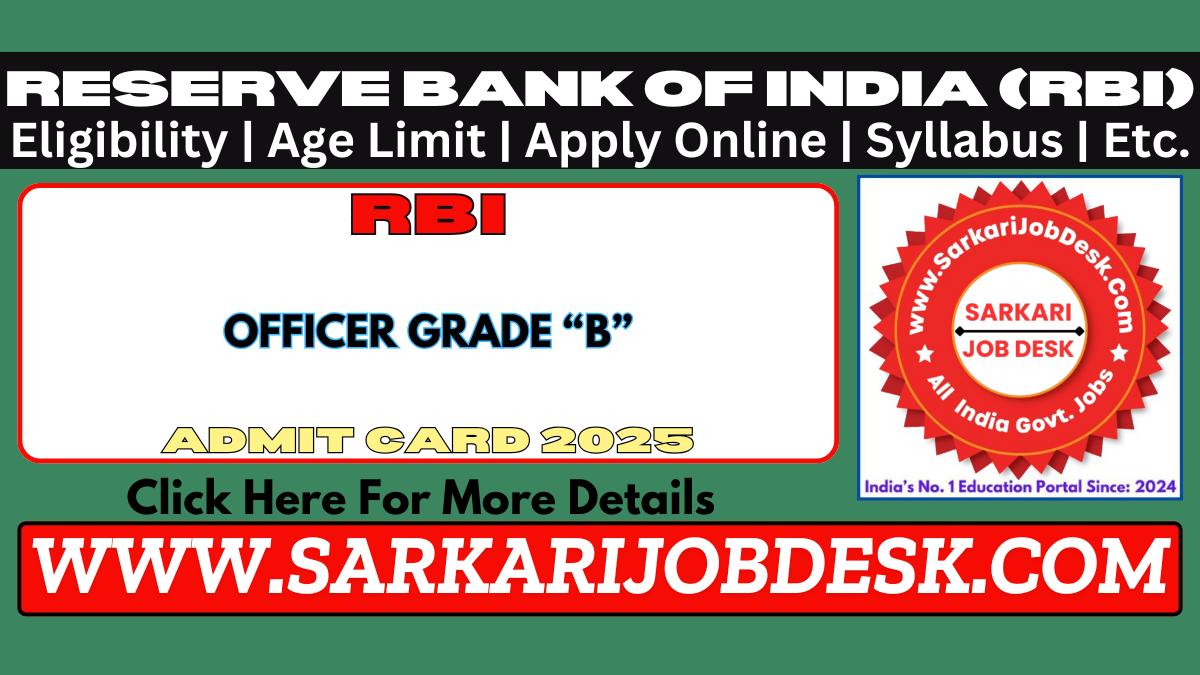 | Name of Post: | RBI Officer Grade B Recruitment 2025 : Download Admit Card for 120 Post |