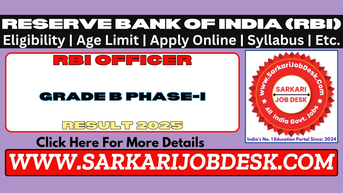 | Short Information : | Reserve Bank of India (RBI) has released the RBI Officer Grade B Phase-I Result 2025 for 120 posts of Officer Grade B (DR-General/DEPR/DSIM). The Phase-I exam was held on 12 October 2025, and the result has been declared on 11 November 2025.