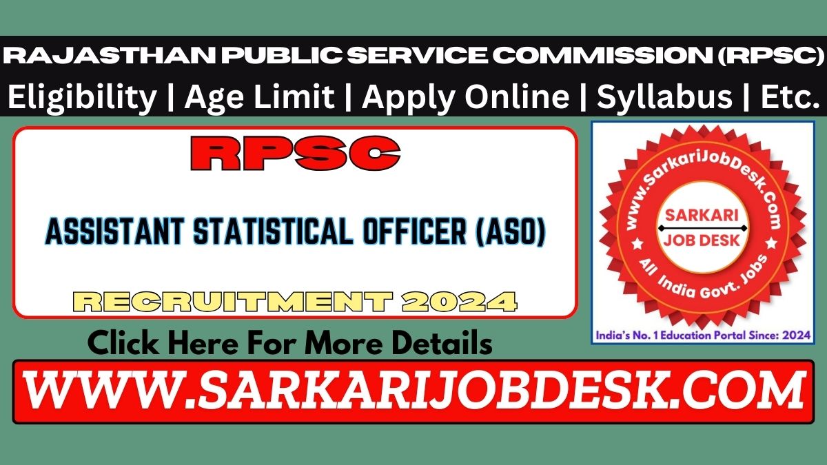 Rajasthan Public Service Commission (RPSC)RPSC Assistant Statistical Officer (ASO) Recruitment 2024RPSC ASO Exam Advt No. : 09/2024 : Short Details of NotificationWWW.SARKARIJOBDESK.COM |
