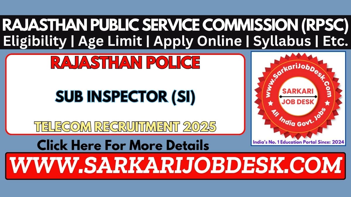 Rajasthan Public Service Commission (RPSC)Rajasthan Police Sub Inspector (SI Telecom) Recruitment 2024RPSC SI Telecom Exam Advt No. : 20/2024 : Short Details of NotificationWWW.SARKARIJOBDESK.COM |
