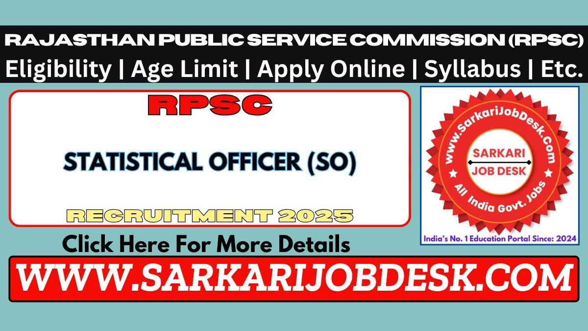 Rajasthan Public Service Commission (RPSC)RPSC Statistical Officer Recruitment 2025RPSC Statistical Office Examination 2025 : Short Details of NotificationWWW.SARKARIJOBDESK.COM |