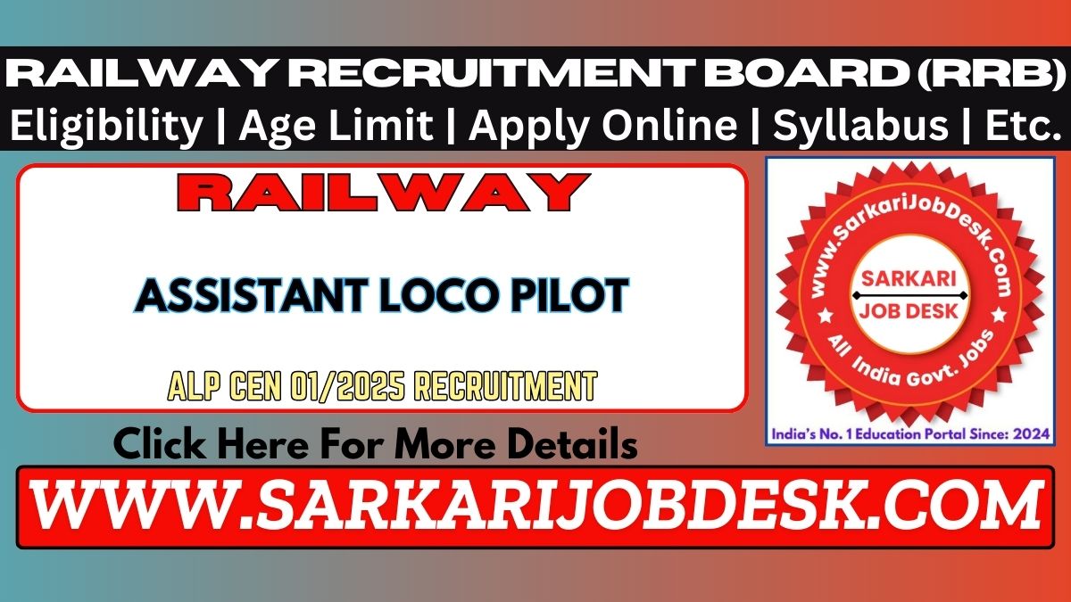 Railway Recruitment Board (RRB)Railway Assistant Loco Pilot (ALP) Recruitment 2025RRB Advt No. : CEN 01/2025 : Short Details of NotificationWWW.SARKARIJOBDESK.COM |