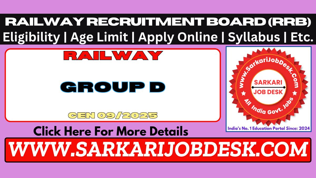 Railway Recruitment Board (RRB)Railway RRB Centralized Recruitment CEN 09/2025 Group D Exam 2026RRB CEN No. 09/2025 Short Details of NotificationWWW.SARKARIJOBDESK.COM |