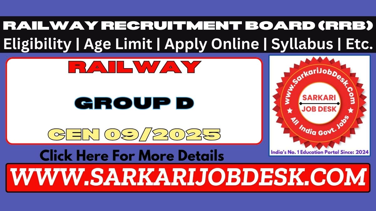 Railway Recruitment Board (RRB)Railway RRB Centralized Recruitment CEN 09/2025 Group D Exam 2026RRB CEN No. 09/2025 : Short Details of NotificationWWW.SARKARIJOBDESK.COM |