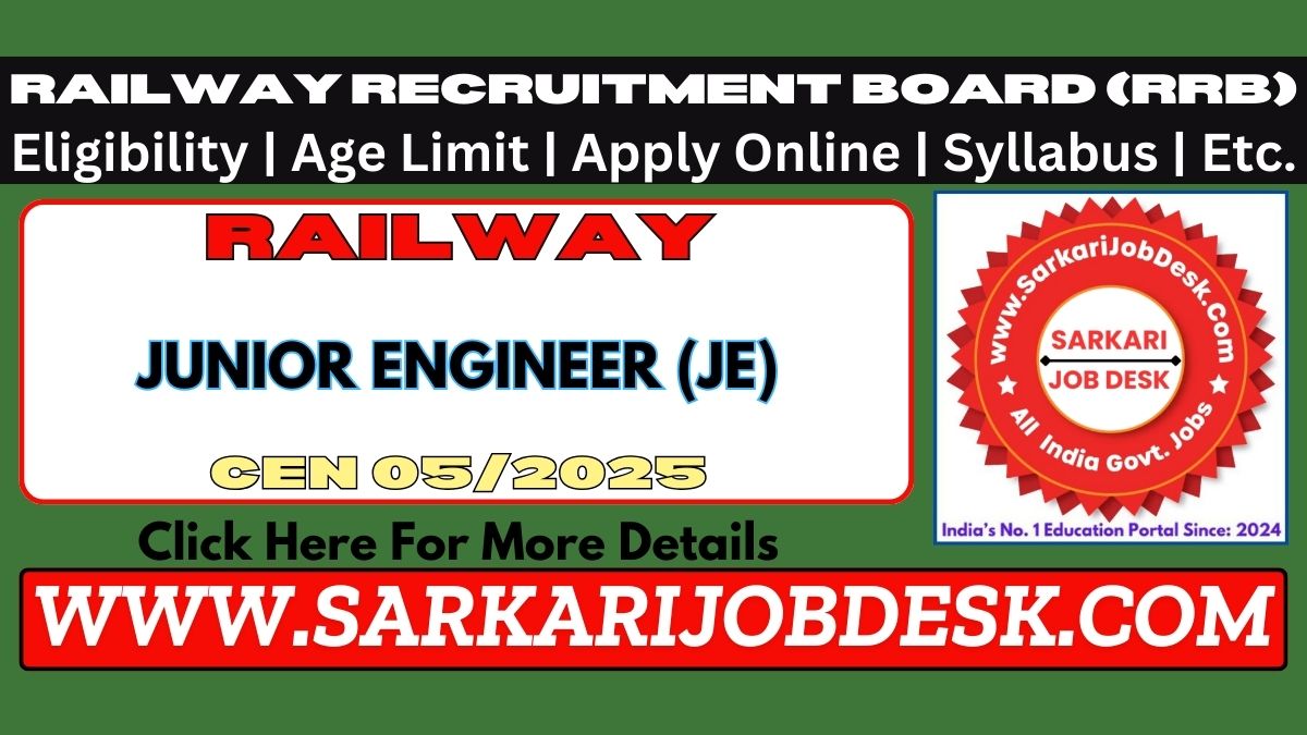 Railway Recruitment Board (RRB)RRB JE Junior Engineer Recruitment 2025RRB JE Advt No. CEN 05/2025 : Short Details of NotificationWWW.SARKARIJOBDESK.COM |