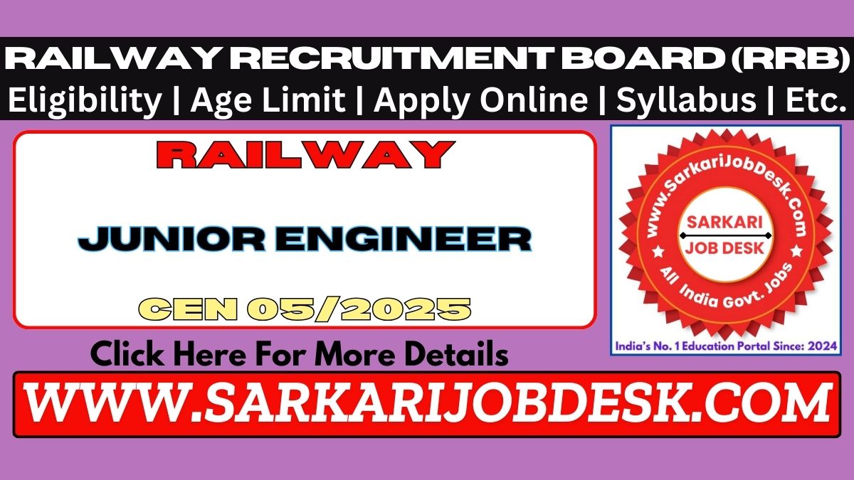 Railway Recruitment Board (RRB)RRB JE Junior Engineer Recruitment 2025RRB JE Advt No. CEN 05/2025 : Short Details of NotificationWWW.SARKARIJOBDESK.COM |
