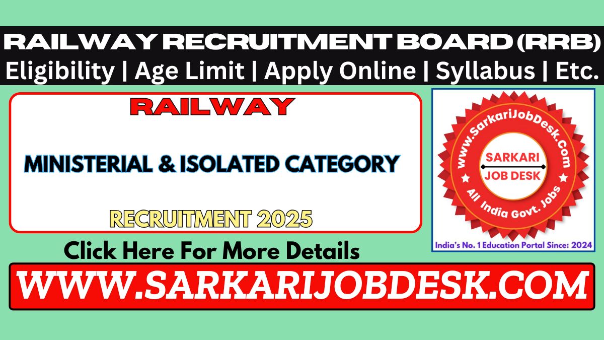 Railway Recruitment Board (RRB)Railway Ministerial & Isolated Category Recruitment 2025RRB Advt No.: CEN-08/2025 : Short Details of NotificationWWW.SARKARIJOBDESK.COM |