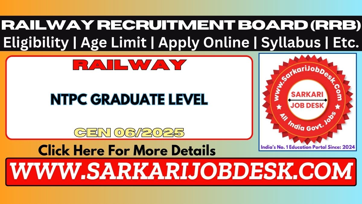 Railway Recruitment Board (RRB)Railway RRB NTPC Graduate Level Recruitment 2025RRB Advt No.: CEN 06/2025 : Short Details of NotificationWWW.SARKARIJOBDESK.COM |