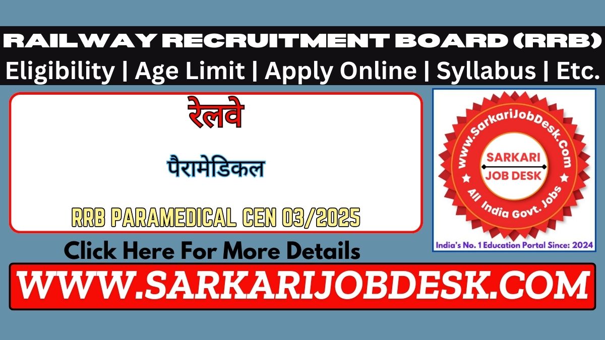 Railway Recruitment Board (RRB)Railway RRB Paramedical Recruitment 2025RRB Advt No. CEN 03/2025 : Short Details of NotificationWWW.SARKARIJOBDESK.COM |