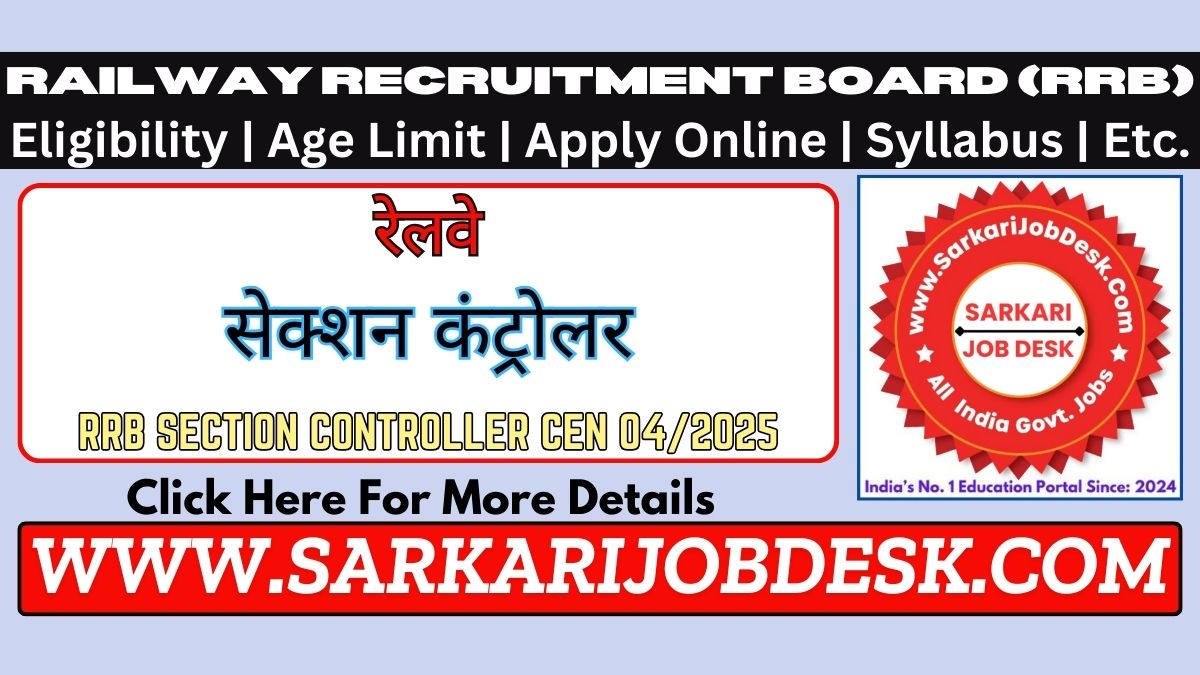 Railway Recruitment Board (RRB)Railway RRB Section Controller Recruitment 2025RRB Advt No.: CEN 04/2025 : Short Details of NotificationWWW.SARKARIJOBDESK.COM |