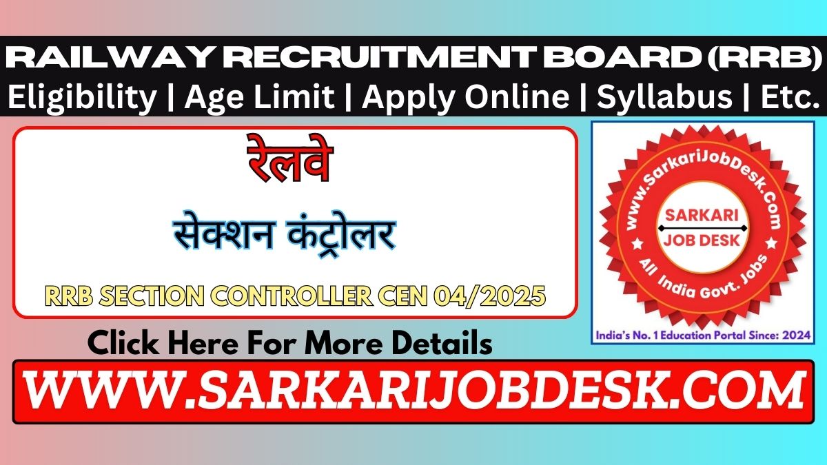 Railway Recruitment Board (RRB)Railway RRB Section Controller Recruitment 2025RRB Advt No. CEN 04/2025 : Short Details of NotificationWWW.SARKARIJOBDESK.COM |