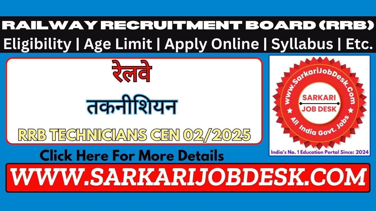Railway Recruitment Board (RRB)Railway RRB Technician Recruitment 2025RRB Advt No.: CEN 02/2025 : Short Details of NotificationWWW.SARKARIJOBDESK.COM |