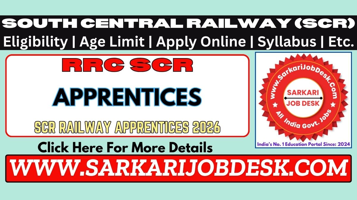 Railway Recruitment Cell (RRC) South Central Railway (SCR)RRC South Central Railway (SCR) Act Apprentices 2026RRC SCR Apprentices 2026 : Short Details of NotificationWWW.SARKARIJOBDESK.COM |