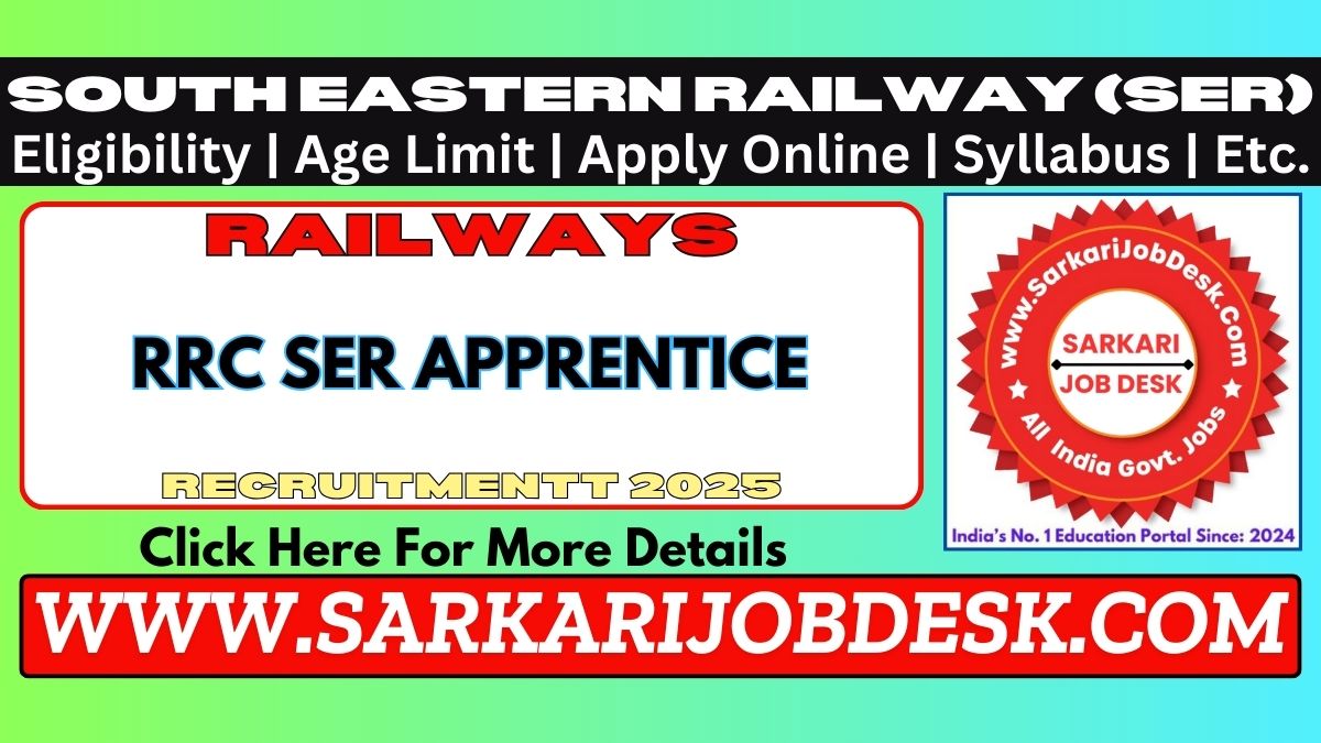 South Eastern Railway (SER)South Eastern Railway Trade Apprentice Recruitment 2025-2026Railway RRC SER Advt No.: SER/P-HQ/RRC/PERS/ACT APPRENTICES/2025-26 : Short Details of NotificationWWW.SARKARIJOBDESK.COM |