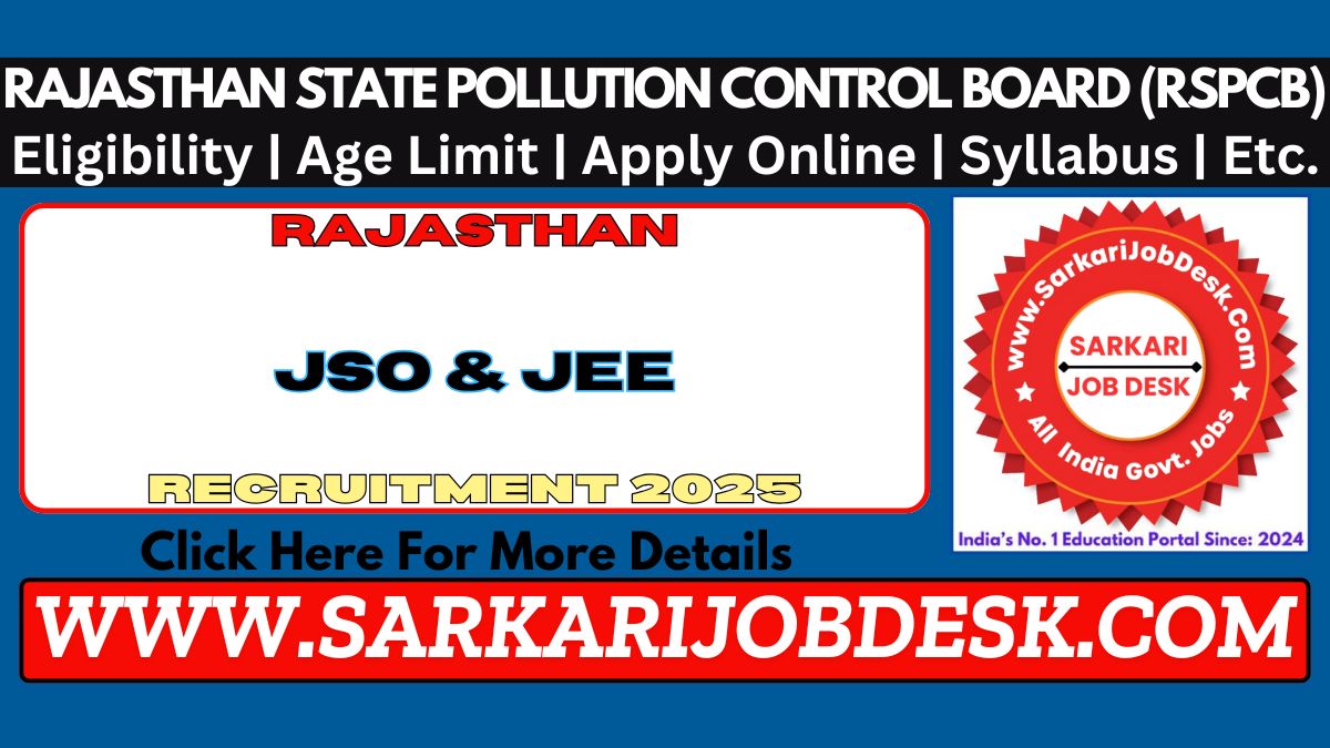 Rajasthan State Pollution Control Board (RSPCB)RSPCB JSO / JEE Recruitment 2025Rajasthan RSPCB Advt No.: 01/2025 : Short Details of NotificationWWW.SARKARIJOBDESK.COM |