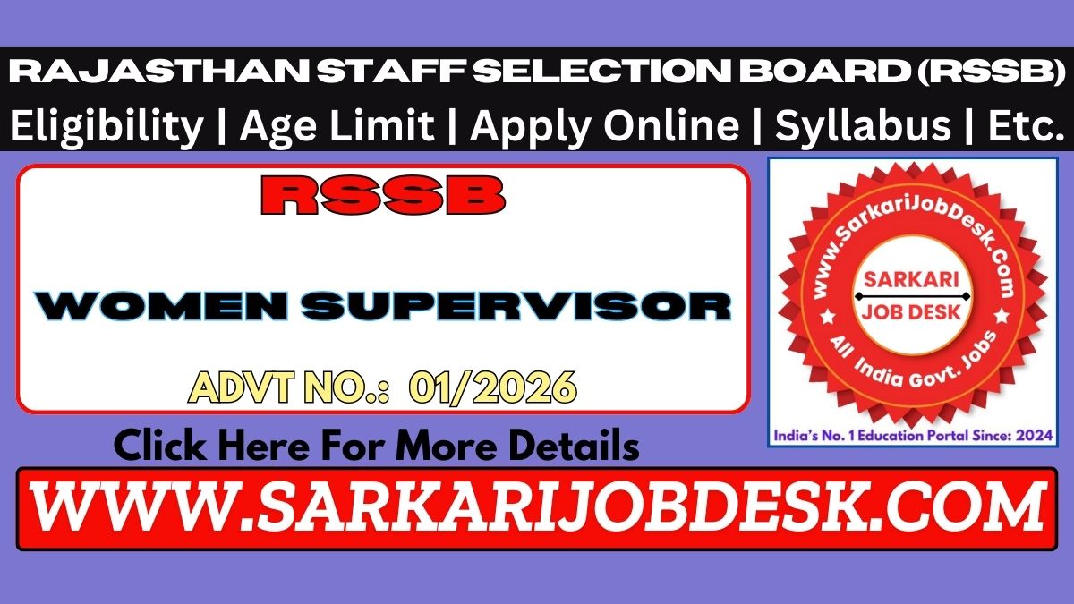Rajasthan Staff Selection Board (RSSB)RSSB Women Supervisor Recruitment 2026RSSB Advt No. 01/2026 : Short Details of NotificationWWW.SARKARIJOBDESK.COM |
