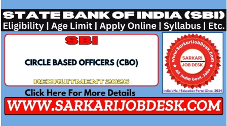 State Bank of India (SBI)SBI Circle Based Officers CBO Recruitment 2026SBI Advt No. : CRPD/ CBO/2025-26/18 : Short Details of NotificationWWW.SARKARIJOBDESK.COM |