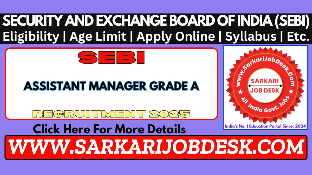 Security and Exchange Board of India (SEBI)Security and Exchange Board of India Recruitment 2025SEBI Officer Grade A (Assistant Manager) 2025 : Short Details of NotificationWWW.SARKARIJOBDESK.COM |